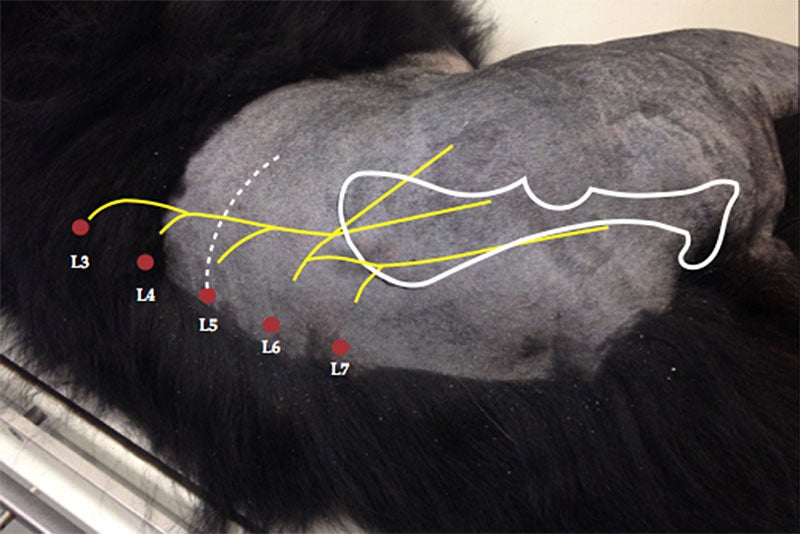 Anesthesie van de ipsilaterale achterpoot inclusief de hemipelvis en het heupgewricht (in combinatie met parasacrale heupzenuwblokkade)